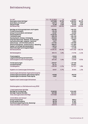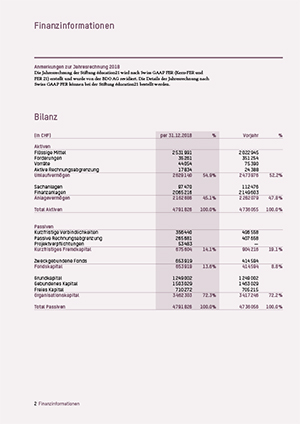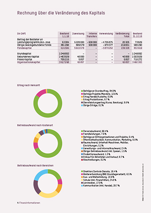 Die Jahresrechnung der Stiftung éducation21 wird nach Swiss GAAP FER (Kern-FER und FER 21) erstellt und wurde von der BDO AG revidiert. Die Details der Jahresrechnung nach Swiss GAAP FER können bei der Stiftung éducation21 bestellt werden.