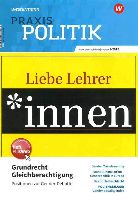 Geschlechterrollen sind im Fluss. Ausgehend von einem Basistext und weiteren Beiträgen wie «Sprache und Gleichberechtigung», «Das dritte Geschlecht» oder «Frauen in Führungspositionen» eignet sich die Broschüre bestens für einen anspruchsvollen (Politik-)Unterricht. Dabei lassen sich die Erfahrungen der Lernenden einbeziehen. Sie setzen sich kritisch u.a. mit der Gender-Debatte auseinander, begegnen den Begriffen Sex, Geschlecht, Gender, intergeschlechtlich oder «Doing Gender» und erkennen deren Zusammenhänge. Die Lernenden formulieren Thesen, analysieren Daten und Karikaturen, argumentieren und entwickeln Konzepte, um daraus ihre Handlungsempfehlungen zu formulieren. Geleitet werden sie dabei von Fragen zu Diskriminierung und Ungleichbehandlung von Mädchen und Frauen, geschlechtergerechte Sprache oder geschlechtstypischer Berufswahl.