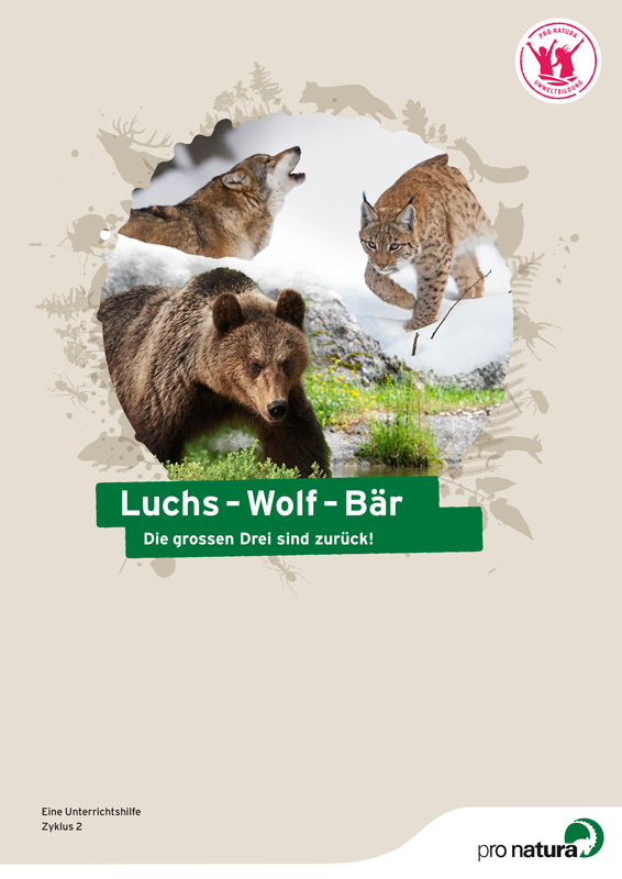 Die Unterrichtshilfe ermöglicht es den Schülerinnen und Schülern, die Lebensweise unserer drei grossen Beutegreifer kennen zu lernen. Die Kinder lernen, wieso die Raubtiere zurückkehren, welche Bedürfnisse sie haben, welche Rolle sie im Ökosystem spielen und was ihre Ausbreitung für die Menschen bedeutet. Dabei werden auch die Konflikte, nötige Massnahmen und verschiedene Sichtweisen thematisiert. Im Sinne von BNE kann dem Perspektivenwechsel und damit dem Prozess der eigenen Meinungsbildung durchaus etwas mehr Gewicht verliehen werden.