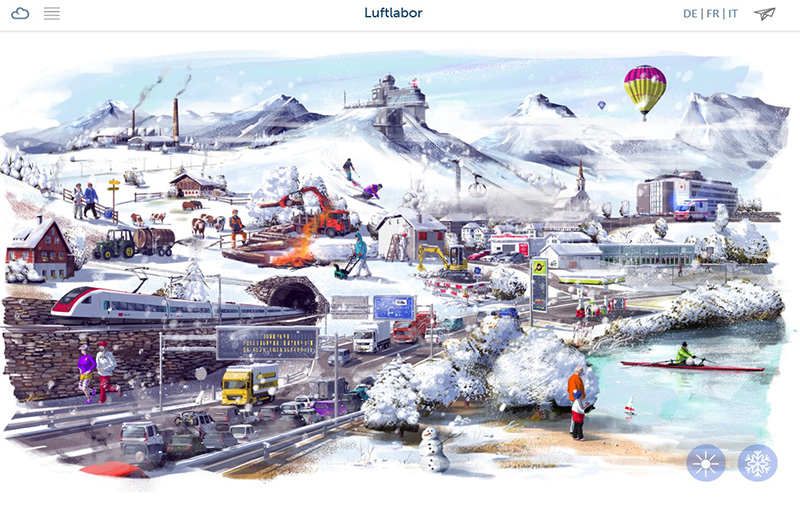 Die Lernwebseite bietet einen Überblick über die Themen der Luftverschmutzung in der Schweiz. In sechs Kapitel gegliedert kann das Luftlabor in mindestens sechs Lektionen bearbeitet werden. Über das animierte Schaubild gelangen die Lernenden mittels Leitfragen rund ums Thema Luft zu Basisinformationen. Diese können im Sinne der Förderung der Medienkompetenz durch weiterführende Hintergrundinformationen erweitert werden. Die Aufgabenstellungen machen die Schüler/-innen mit ihrer Umgebung vertraut und knüpfen an ihren Alltag an. Ergänzend führen die SuS themenspezifische Lernjournals und setzen einfache Experimente um. Durch dieses Dossier erkennen die SuS den Einfluss der Luft auf die Gesundheit und können dadurch ihren Alltag gesundheitsfördernder gestalten. Sie lernen Luft als globale Ressource kennen und sie vor weiterer Verschmutzung zu schützen. Sie setzen sich kritisch-konstruktiv mit der uns alle umgebenden lebensnotwendigen Luft auseinander und bearbeiten gemeinsam nachhaltigkeitsrelevante Fragestellungen.