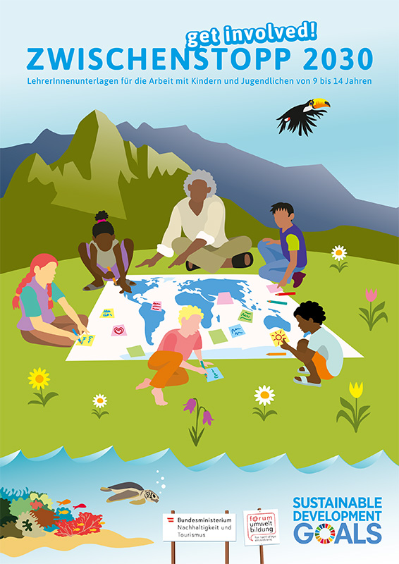 Die Unterlagen für Lehrkräfte umfassen Hintergrundinformationen zu den SDG und Umsetzungsvorschläge zur Auseinandersetzung mit dem dazu entwickelten Lehrplakat. Zielgruppe sind Kinder und Jugendliche zwischen 9 und 14 Jahren. Das Plakat greift verschiedene globale Themen auf, anhand derer zukunftsfähige Lösungen diskutiert werden können. Ein SDG-Quiz sowie weiterführende Links und Materialien dienen der Vertiefung.