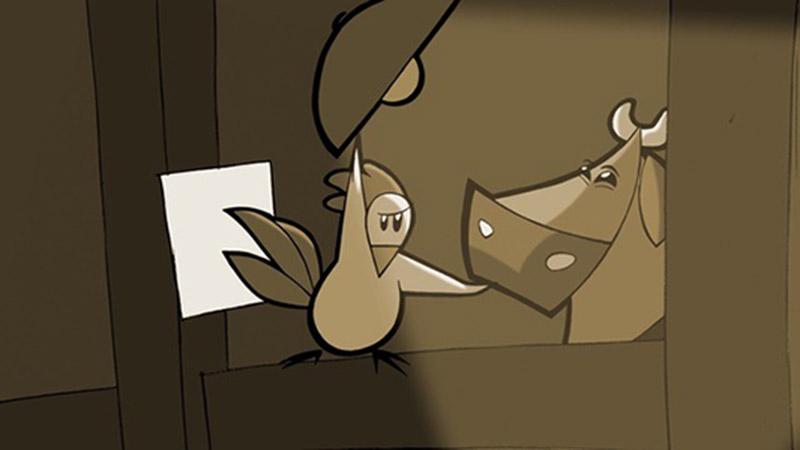 In bester Krimi-Manier machen sich ein Hahn und eine Henne auf die Suche nach dem Dieb, der ihr Ei gestohlen hat. Alles deutet auf den Bauern hin. Um das Ei vor dem Kochtopf zu retten, riskieren sie in einem spektakulären Einsatz Kopf und Kragen. Erschöpft, aber glücklich, schaffen sie es mit dem Ei zurück in den Hühnerstall. Wenig später schlüpft ein Küken, was den Bauern, der sich sein Ei zurückholen will, achselzuckend abmarschieren lässt. Dass ganz am Schluss die Henne mit einem neuen Ei aufwartet, hätte niemand erwartet, ist aber ein schönes Ende – oder ein Anfang?