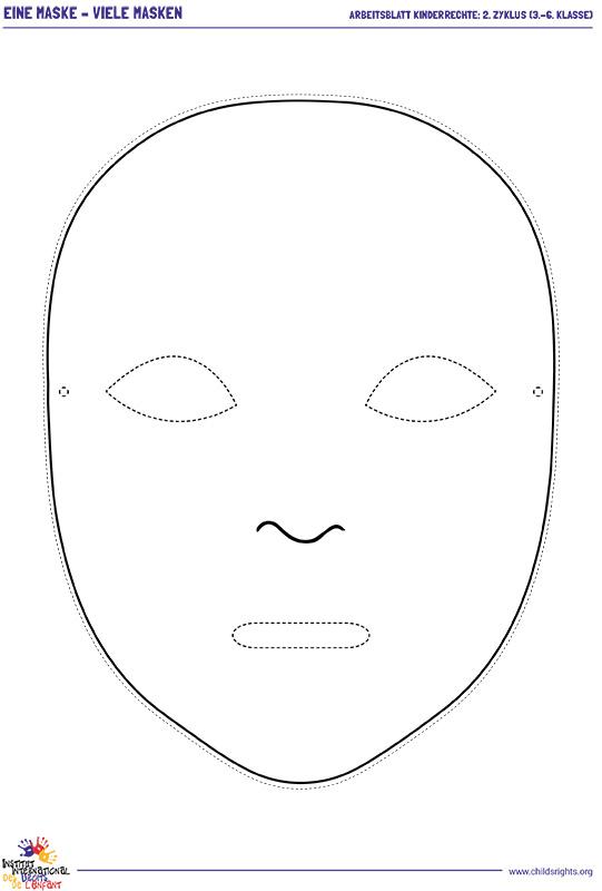 Das Arbeitsblatt für die zweite Aktivität des zweiten Zyklus bietet eine Schablone zum Ausschneiden von Masken. Mit den unterschiedlichen Masken machen die Schüler/-innen die Erfahrung einer Situation der Uniformität (alle spazieren mit der weissen Maske durch das Klassenzimmer) und anschliessend einer Situation der Diversität (alle tragen anschliessend die von ihnen dekorierte und gestaltete Maske). Diese kleine Übung ist die Grundlage für eine Reflexion über die Diversität in der Gesellschaft und den Reichtum, den sie darstellt.