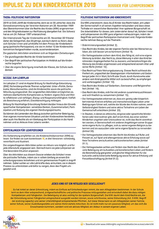 Kinderrechte 2019: «Politische Partizipation» - Dossier für Lehrpersonen