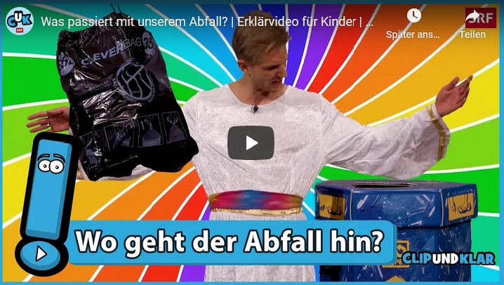 Im SRF-Format Clip und klar! stehen diverse Erklärvideos zum Thema Abfall zur Verfügung: Was passiert mit unserem Abfall?, Food Waste: Was ist das? und Wie kommt das Plastik ins Meer?Eco-Schools (von j’aime ma planète)