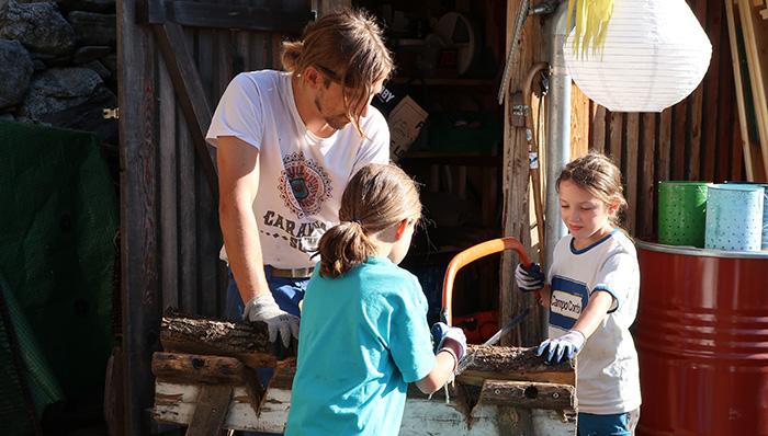 Ein besonderes Lagererlebnis auf der Alp: Kochen auf dem Feuer und Warmwasser von Solarpanels. Die Förderung sozialer Kompetenzen und praktischer Fähigkeiten stehen dabei im Vordergrund. Die Betriebsleiterfamilie wohnt vor Ort und leitet die Arbeiten während einem Umwelteinsatz gemeinsam mit den Lehrpersonen: Kulturlandschaftspflege, Brennholz schlagen, Trockenmauerpflege, eigene Projekte umsetzen. - 3. Zyklus