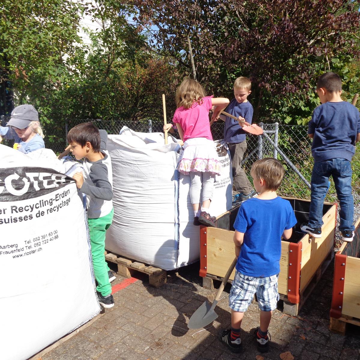 Zum Start des Schuljahres 14/15 erhielten alle Klassen zwei SBB-Palettkisten und entsprechendes Werkzeug für eigene Pflanzexperimente. Als erster Schritt wurden alle Kisten mit Erde gefüllt und eine Gründüngung angesät. In den Wintermonaten handelte jede Klasse aus, was in ihrem Palett angesät oder angepflanzt werden sollte.Ausserschulische Angebote