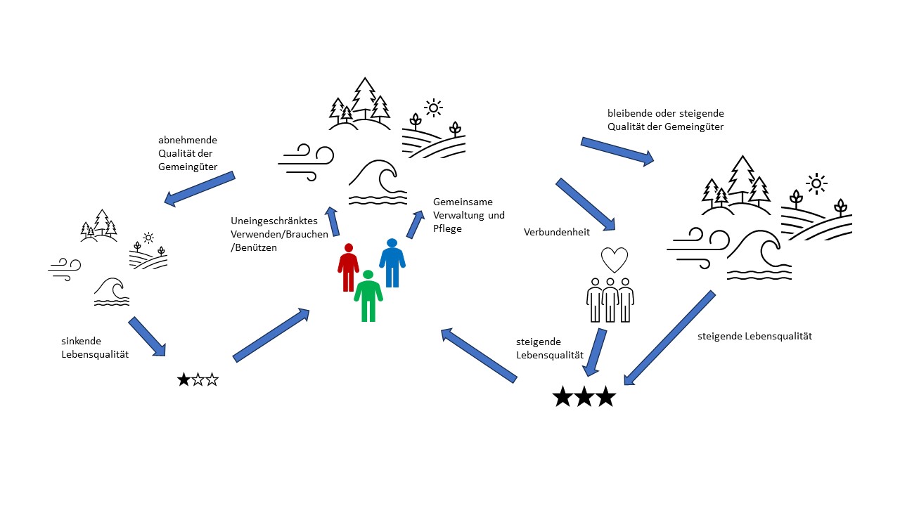 Gerade bei Gemeingütern wie sauberer Luft, die grundsätzlich für alle zugänglich sind und von allen genutzt werden können, tragen die Antworten auf diese Fragen eine zentrale Bedeutung für eine nachhaltige Entwicklung. Zudem umgeben Gemeingüter Lernende tagtäglich, beispielsweise in Form der öffentlichen Schule, des Waldes oder des Esstischs zuhause. Deshalb gehört das Thema „Gemeingüter“ in einen BNE-orientierten Unterricht.