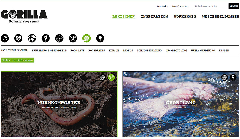 Im Dossier für Lehrpersonen wird das Thema beschrieben und es werden Unterrichtsaktivitäten für die Zyklen 1 bis 3 vorgeschlagen. Für jeden Zyklus sind Arbeitsblätter für die Schülerinnen und Schüler verfügbar (s. weiterführende Ressourcen).GORILLA Schulprogramm (Bildungsplattform)