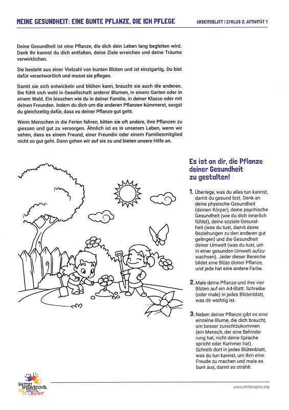 In den Unterrichtsimpulsen zum Kinderrechtstag wird der Gesundheitsbegriff in einem fachübergreifenden, interdisziplinären Ansatz behandelt. So werden nicht nur körperliche und psychische, sondern auch soziale, wirtschaftliche und ökologische Faktoren beleuchtet. Zyklus 2: Anhand einer Pflanze sollen die Kinder verschiedene Aspekte der Gesundheit erkennen sowie ihrer eigenen gesundheitlichen Bedürfnisse und der Bedeutung zwischenmenschlicher Beziehungen bewusst werden.Kinderrechte 2020: "Gemeinsam gesund!" - Dossier für Lehrpersonen
