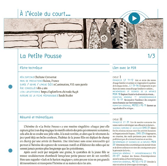 Fiches pédagogiques qui accompagnent quatre court métrages d’animation. Ces courts-métrages permettent d'aborder de manière créative et symbolique des questions actuelles en lien avec notre développement: utilisation des ressources naturelles, eau, inégalités, développement économique, image de soi et du monde.Exemples de pratiques