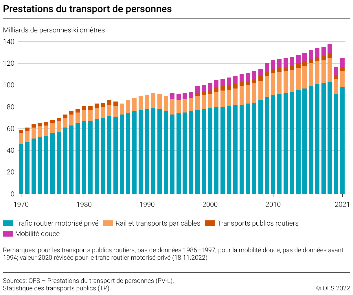 Les gens se déplacent. Qu'il s'agisse d'aller à l'école, au travail ou faire ses courses, de se rendre chez des amis ou dans des associations ou encore de partir en vacances. Bien que le trajet ne soit pas la destination finale pour de nombreuses personnes au quotidien, ce dossier thématique se concentre sur le chemin. La question de savoir quels trajets les gens effectuent et avec quels moyens de transport est en effet d'une importance capitale dans la perspective d'un développement durable et concerne tout le monde.