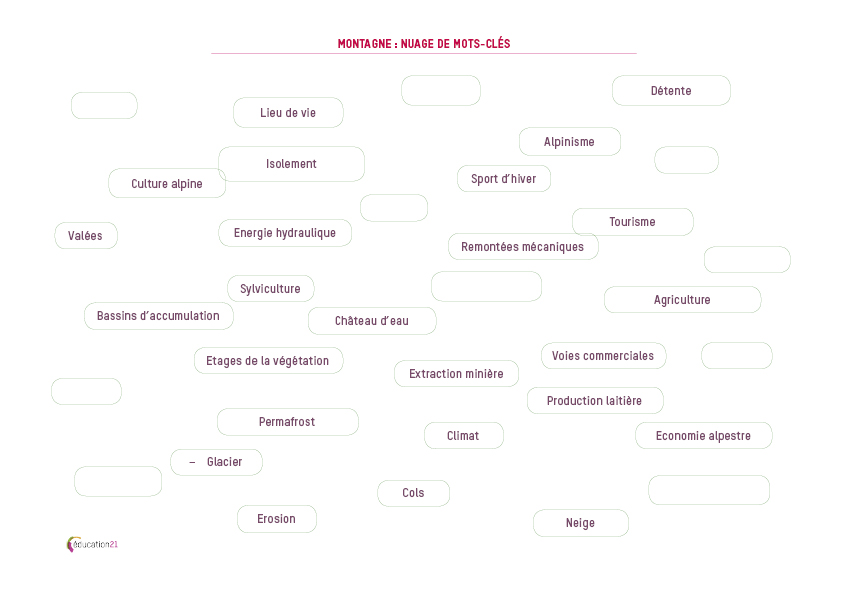 Le Réseau d'éducation à la montagne alpine, a pour finalité la mise en réseau des acteurs du massif alpin français, pour le développement et la promotion de l’éducation à la montagne, dans une perspective de développement durable. Les ressources pédagogiques présentées peuvent convenir pour le contexte suisse.
