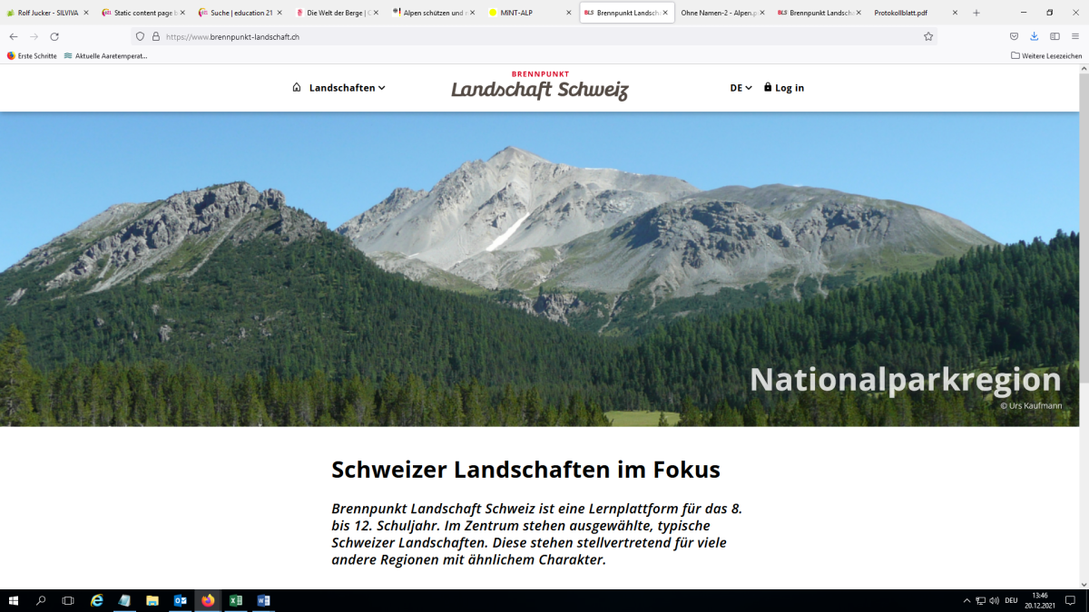 La plateforme d'apprentissage, destinée aux élèves de la 8ème à la 12ème année scolaire, met l’accent sur une sélection de paysages suisses typiques, à l'aide desquels des analyses spatiales régionales approfondies peuvent être effectuées. Pour les Alpes, il existe 4 modules de formation : Le paysage fluvial du Grimsel, le grand glacier d'Aletsch, le Parc national et Zermatt ainsi que Gantrisch en tant que région préalpine. Les modules sont élaborés en collaboration avec des étudiants et testés dans la pratique.Régions de montagne (DDC)