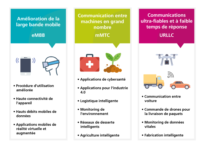 Par rapport aux technologies actuelles de communication mobile (3G et 4G), la 5G présente des avantages essentiels, notamment pour le développement de nouvelles technologies.