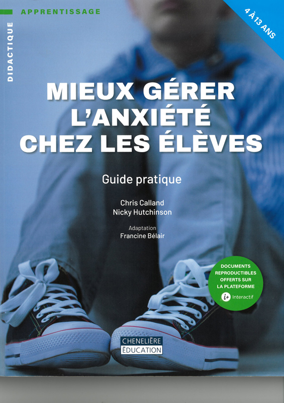 Le meilleur apprentissage se réalise lorsque les enfants sont détendus et heureux! Comment promouvoir dans l'école et dans la classe un environnement sécure, qui permette d'apprivoiser ses émotions, d'expérimenter et trouver de nouvelles stratégies personnelles pour gérer l'anxiété, et de manière globale, pour bien vivre ensemble? Cet ouvrage fort intéressant propose un approfondissement et un programme échelonné selon l'âge et avec des objectifs réalistes et réalisables par le corps enseignant, autour de la prise en compte de l'anxiété chez les enfants de 4 à 13 ans. Préalable à une bonne santé mentale et au renforcement de l'estime et de la confiance en soi pour participer et devenir pleinement citoyen.