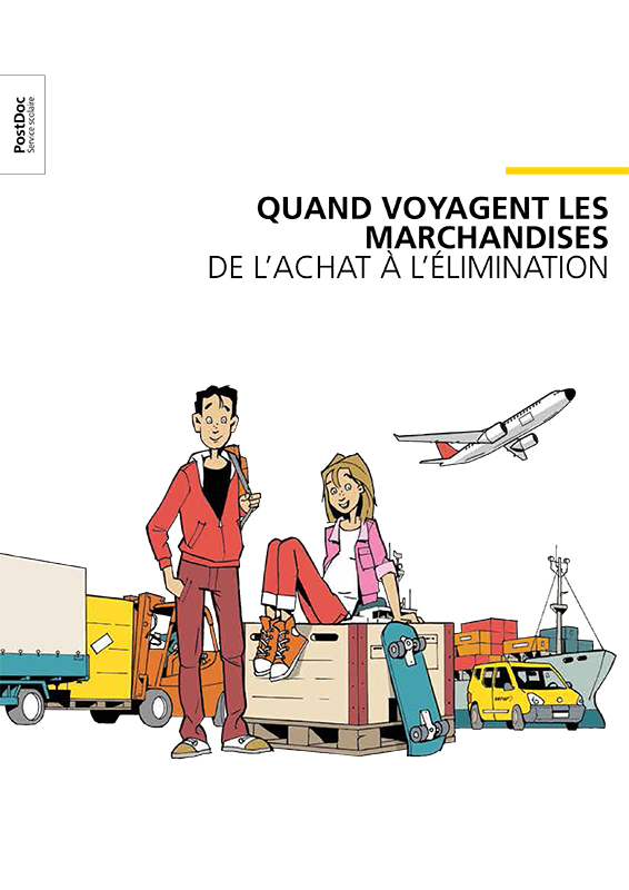 Ce moyen didactique gratuit pour le degré secondaire suit les pistes cachées de la logistique. Les élèves découvrent les différentes étapes que suivent les produits, de l'approvisionnement en matières premières à l'élimination, en passant par la production et la vente.Avec les protagonistes Tilda et Nico, ils partent à la découverte de divers aspects des flux internationaux de marchandises et les remettent en question de manière critique. Cette offre pédagogique multimédia comprend un cahier d'exercices et une application didactique. Elle aborde les thèmes économie, travail, budget, espaces, temps et société. Commentaire pour l'enseignant-e disponible en téléchargement.