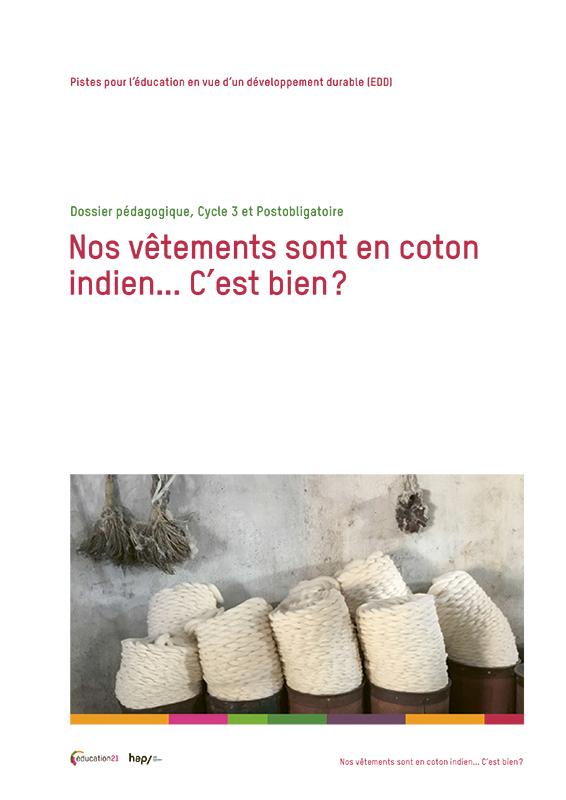 La thématique du coton produit à l'autre bout du monde (Inde) et porté chez nous par les élèves visés, ainsi que les activités proposées, conduisent les élèves à mobiliser toutes les perspectives du développement durable. Les travaux les conduisent à s'interroger sur les différents modes de production, leurs impacts afin de trouver des arguments pour se positionner individuellement et prendre des décisions de consommateurs avertis.