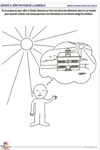 Utilizzando queste schede e le attività correlate, gli allievi riflettono e discutono su come affrontare e resistere in una giornata di canicola. Il legame é fatto con i diritti dei bambini colpiti dal cambiamento climatico in Svizzera. In seguito un gioco memory li invita a riflettere sull'impatto delle azioni quotidiane sul riscaldamento globale. - 2° ciclo