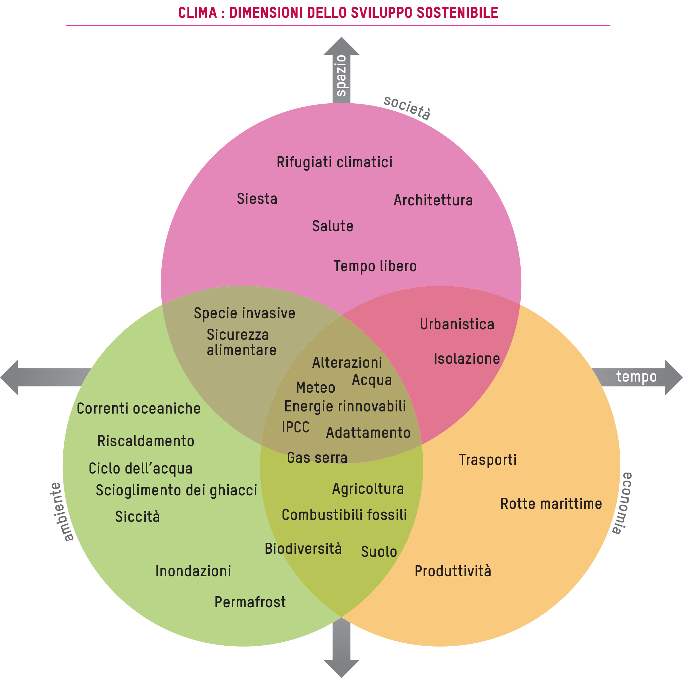 Area d'apprendimento società: aspetti etica, ecologia, politica, tecnologia ed economia.