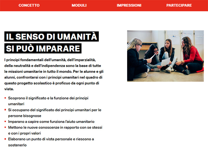 "Regole in guerra" si occupa di guerra, fuga e migrazione, nonché delle regole del diritto internazionale umanitario. Giochi, esercizi e lavoro di gruppo aiutano gli studenti ad acquisire conoscenze sui motivi della fuga, sulle regioni di conflitto e sul diritto umanitario internazionale, ad abbattere i pregiudizi nei confronti dei rifugiati e a sviluppare l'empatia. Vi è pure un sito sulla gestione dei conflitti.Sotto il velo: la mia vita con il velo per le strade di Roma