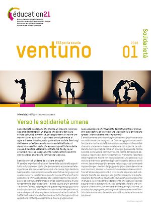 "Uno per tutti, tutti per uno". Questo motto, adottato dalla Svizzera e tramandato sin dal XIX secolo, rappresenta il principio di solidarietà nella nostra società: un principio di impegno per raggiungere degli obiettivi comuni; un principio di assunzione di responsabilità nei confronti dell’ambiente sociale e naturale; un principio che rafforza il legame sociale e incoraggia le persone ad aiutarsi reciprocamente. Come possiamo vivere oggi all’insegna di questo motto? Come possiamo creare una società dove vige la massima coesione sociale possibile? E come possono bambine, bambini e giovani mettere in pratica la solidarietà durante gli studi o la formazione? Il dossier tematico "Solidarietà" avvicina le e gli insegnanti a questo tema articolato e presenta approcci specifici ad ogni livello per trattarlo da più punti di vista e con un orientamento all’azione durante l’insegnamento.