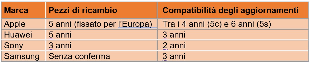 Il Centro europeo dei consumatori definisce diverse categorie di obsolescenza programmata. I telefoni cellulari sono influenzati principalmente da :