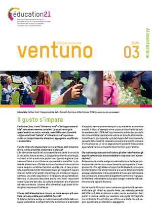 ventuno è la rivista sulla pratica dell'educazione allo sviluppo sostenibile (ESS) nell'insegnamento pubblicata dalla fondazione éducation21. Con ventuno sono proposti una scelta di materiali didattici selezionati, delle attività e dei suggerimenti per affrontare il tema in modo trasversale e globale.